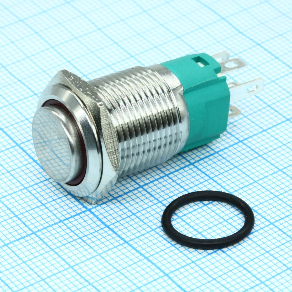 Кнопка антивандальная с подсветкой 12В d16 3A 250B (5c) (ON)-OFF/(OFF)-ON