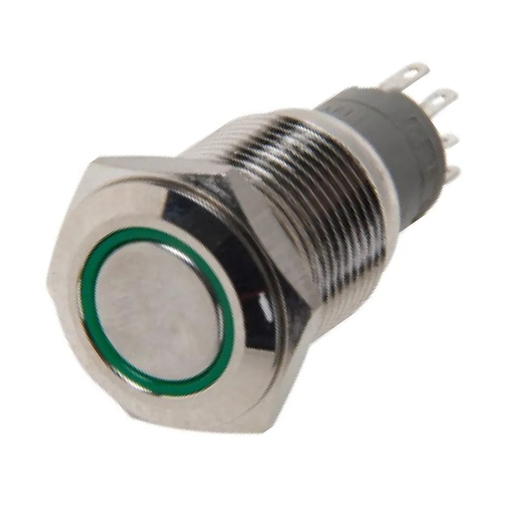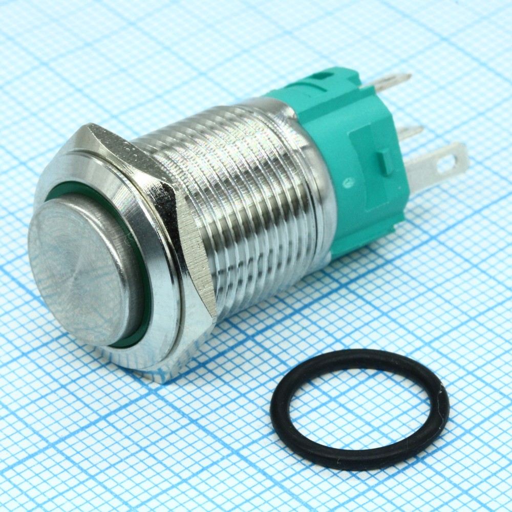 A16-C4-B-1 с зеленой подсветкой, Кнопка антивандальная с подсветкой 250В d16 3A 250B (5c) (ON)-OFF/(OFF)-ON без фиксации