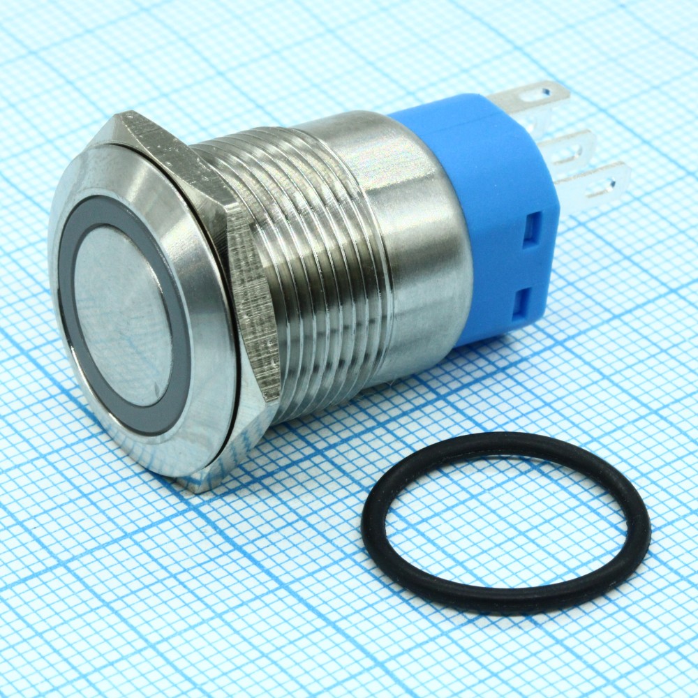 Кнопка антивандальная с подсветкой 250В d19 5A 250B (5c) ON-OFF/OFF-ON с фиксацией