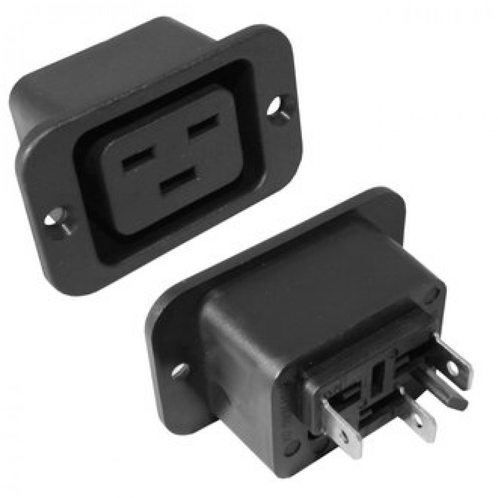 Разъем питания серии AC, розетка 3-х полюсная с фланцами на панель, 16А 250В