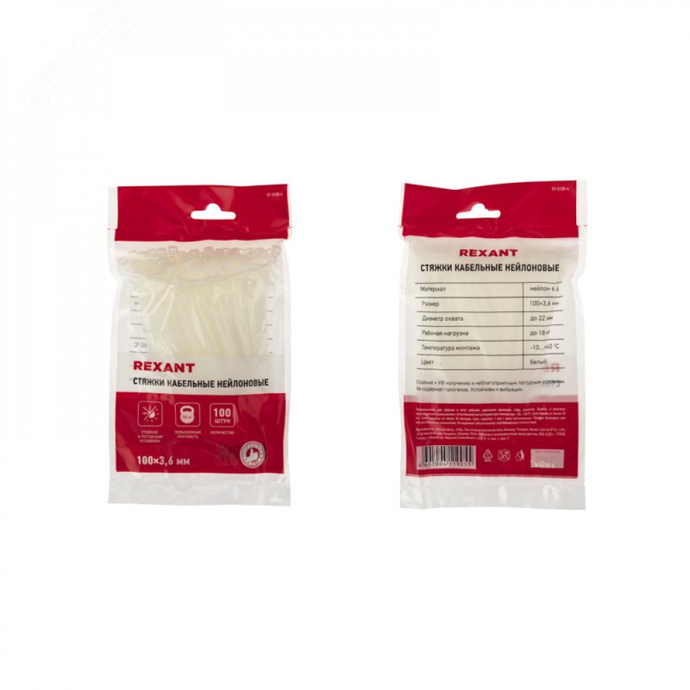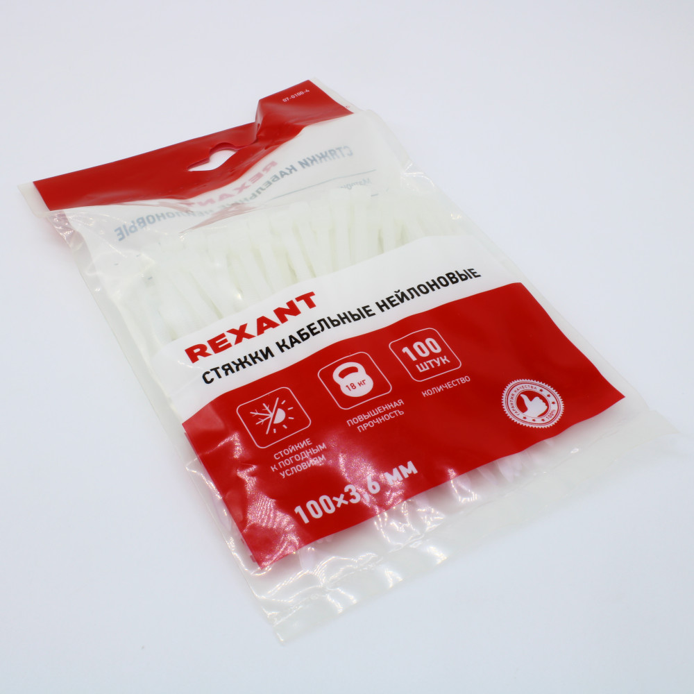 Стяжка 3.6*100 белая (100 шт), хомут-стяжка кабельная нейлоновая