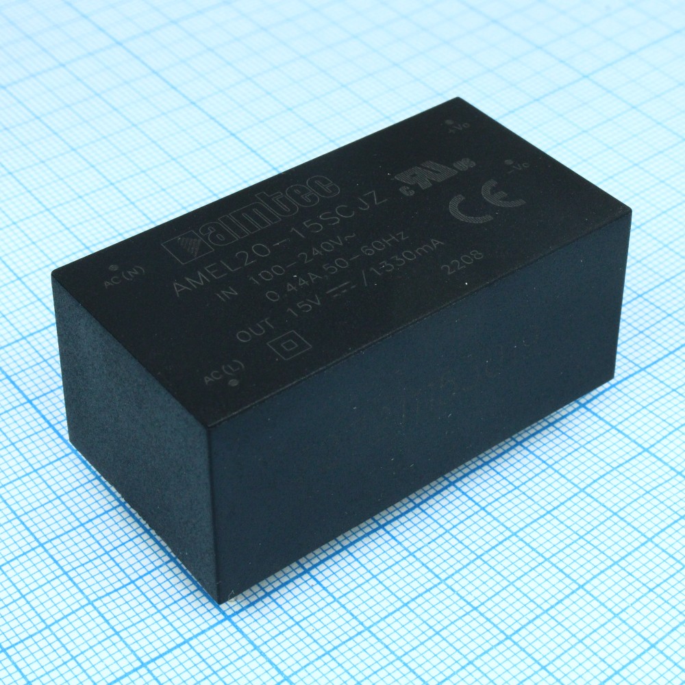Доставка AMEL20-15SCJZ , AC/DC, 20Вт, вход 85…264В, выход 15В/1.3А, изоляция 3000В AC, КПД 83%, максимальная емкостная нагрузка не более 2700мкФ, 53.8x28.8x23.5мм, -20…75°C, пластик