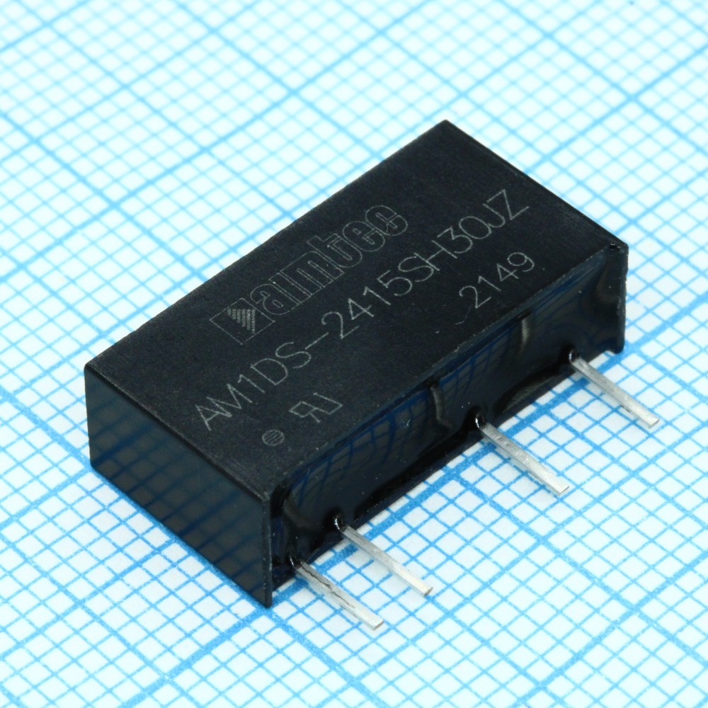 AM1DS-2415SH30JZ, DC/DC, 1Вт, вход 21.6…26.4В, выход 15В/0.007…0.067А, изоляция 3000В DC, КПД 81%, максимальная емкостная нагрузка не более 560мкФ, SIP7, 19.65x6x10.16мм, -40…105°C, пластик