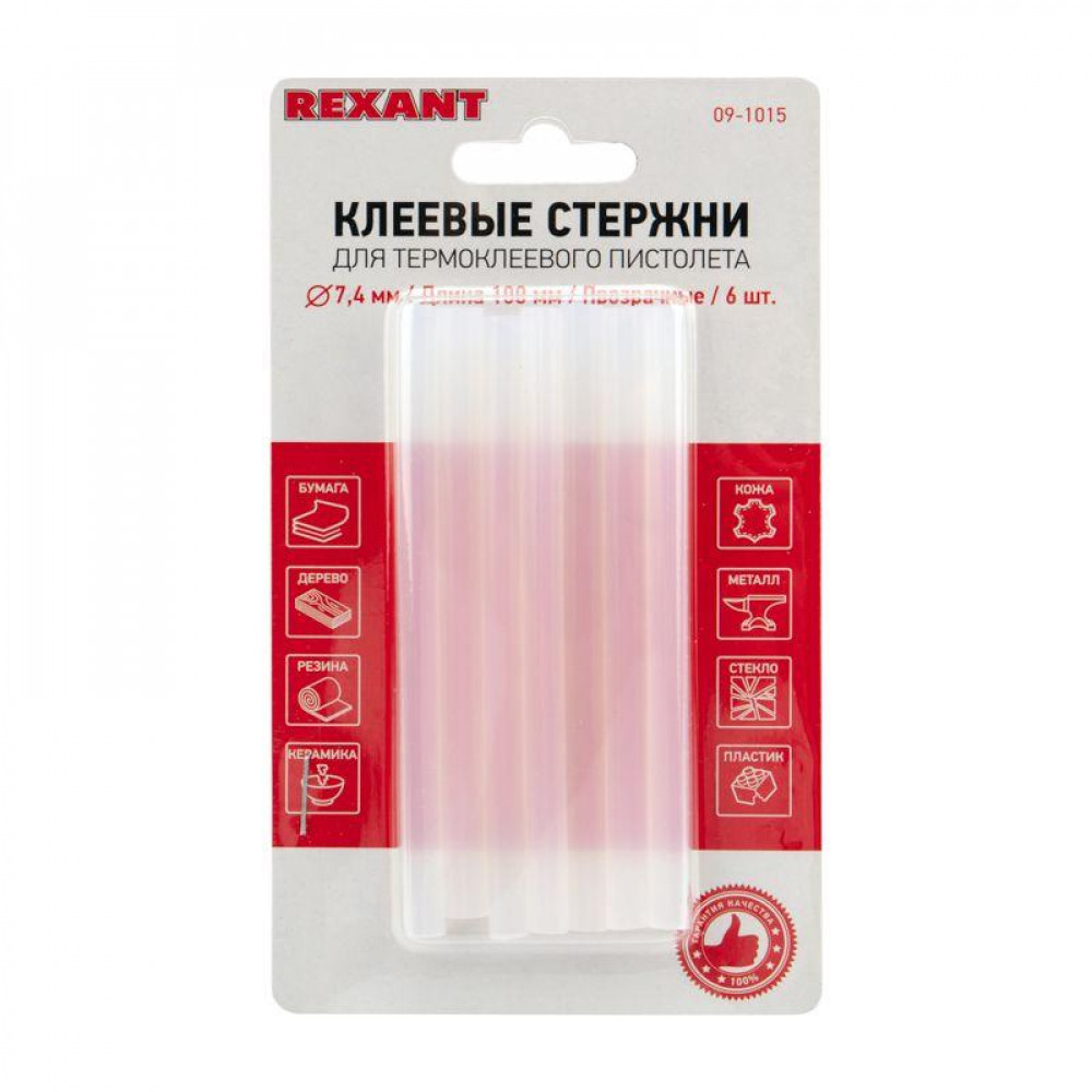 Стержни клеевые 7мм,100мм, 6шт/уп, прозр, блистер