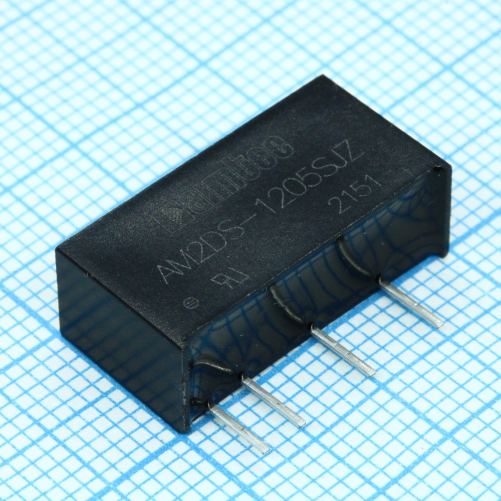 AM2DS-1205SJZ, DC/DC, 2Вт, вход 10.8…13.2В, выход 5В/0.04…0.4А, изоляция 1500В DC, КПД 82%, максимальная емкостная нагрузка не более 2400мкФ, SIP7, 19.65x7.05x10.16мм, -40…105°C, пластик