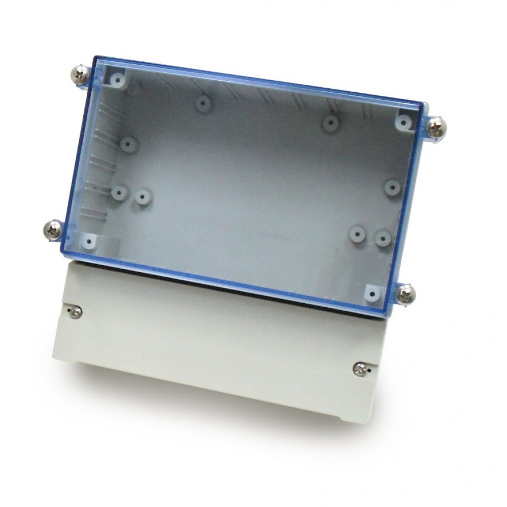 Двухсекционный корпус IP65 с прозрачной синей крышкой на винтах, база ABS светло-серая, крышка из поликарбоната