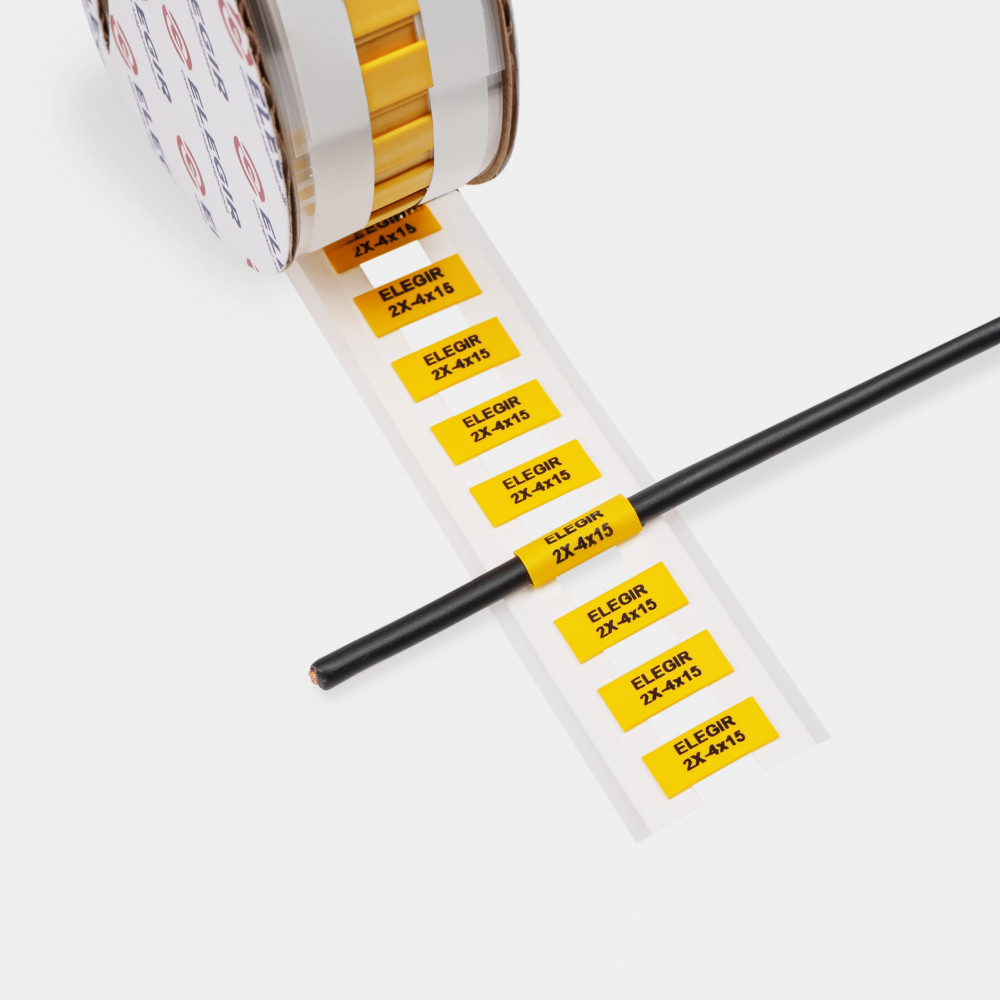 Маркер термоусадочный, для маркировки и изоляции проводов и кабелей, длина 15 мм, диаметр провода: 4 - 2 мм, цвет желтый, для принтера: RT200, RT230, в упаковке 900 маркеров