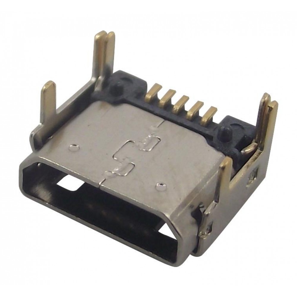 Разъем микро USB 2.0 тип В 5 контактов угловой для поверхностного монтажа крепление в отверстия