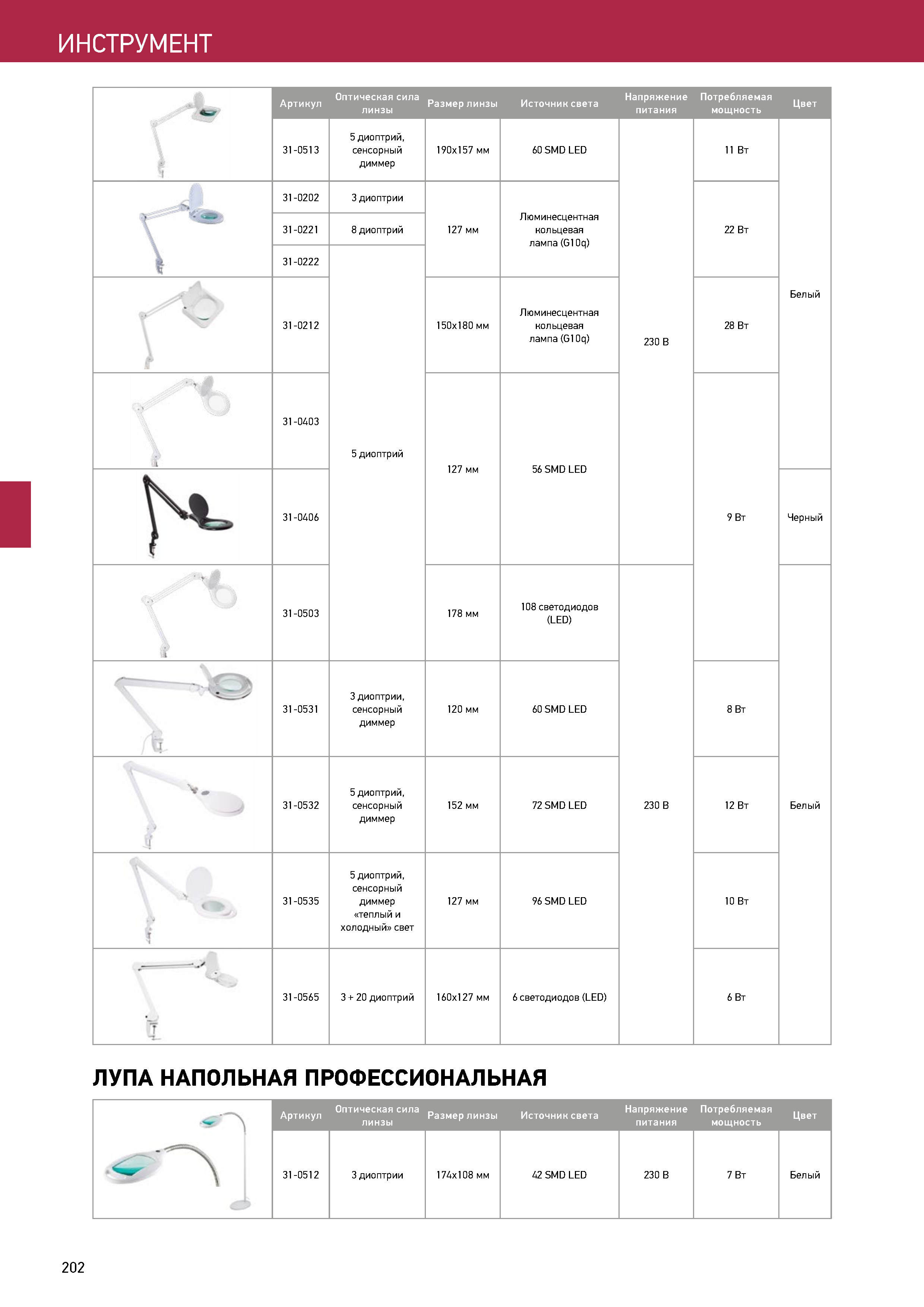 Доставка Лупа на струбцине круглая, 5D , с подсветкой 72 SMD, сенсорный регулятор яркости, белая