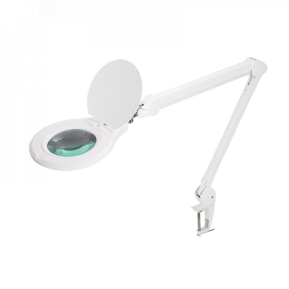 Лупа на струбцине круглая, 5D, с подсветкой 72 SMD, сенсорный регулятор яркости, белая