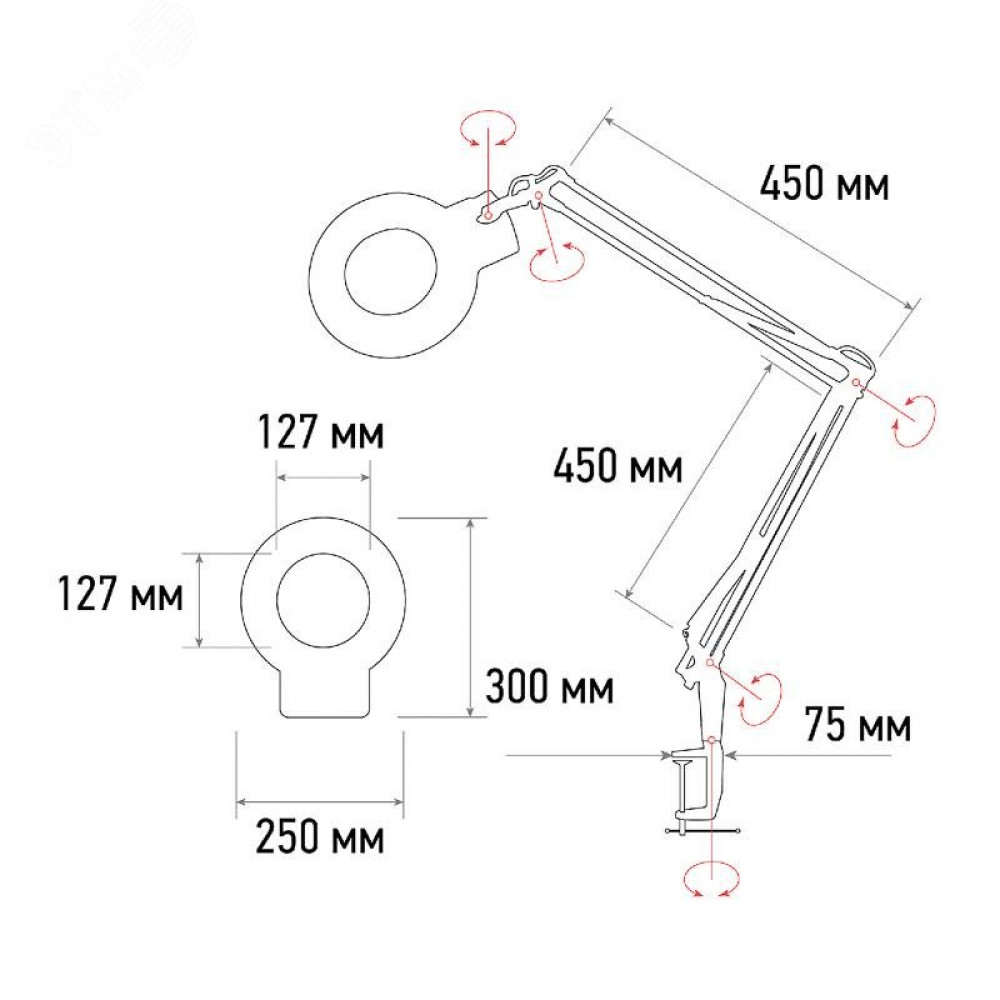 Описание Лупа на струбцине круглая, 5D