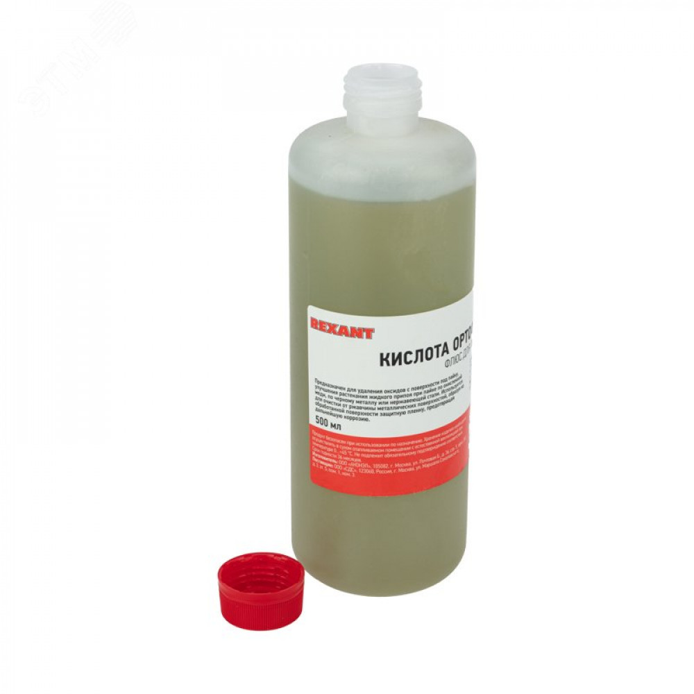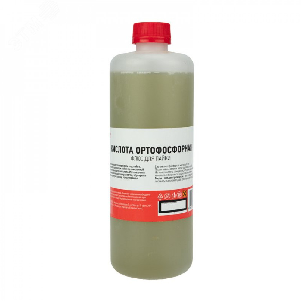 Флюс для пайки КИСЛОТА ОРТОФОСФОРНАЯ REXANT предназначен для удаления оксидов с поверхности под пайку, улучшения растекания жидкого припоя при пайке по окисленной меди, по чёрному металлу или нержавеющей стали. Кроме того, часто используется для очистки от ржавчины металлических поверхностей, образуя на обработанной поверхности защитную плёнку, предотвращая дальнейшую коррозию. Данная кислота применяется как флюс при пайке деталей или поверхностей припоями оловянно-свинцовой группы. После пайки остатки легко удаляются водой. Не желательно использовать данную кислоту при пайке высокочастотных элементов и печатных плат из-за кислотности остатков.