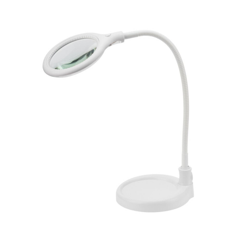 Лупа настольная 3D, с подсветкой 30 LED, подставка+прищепка, белая