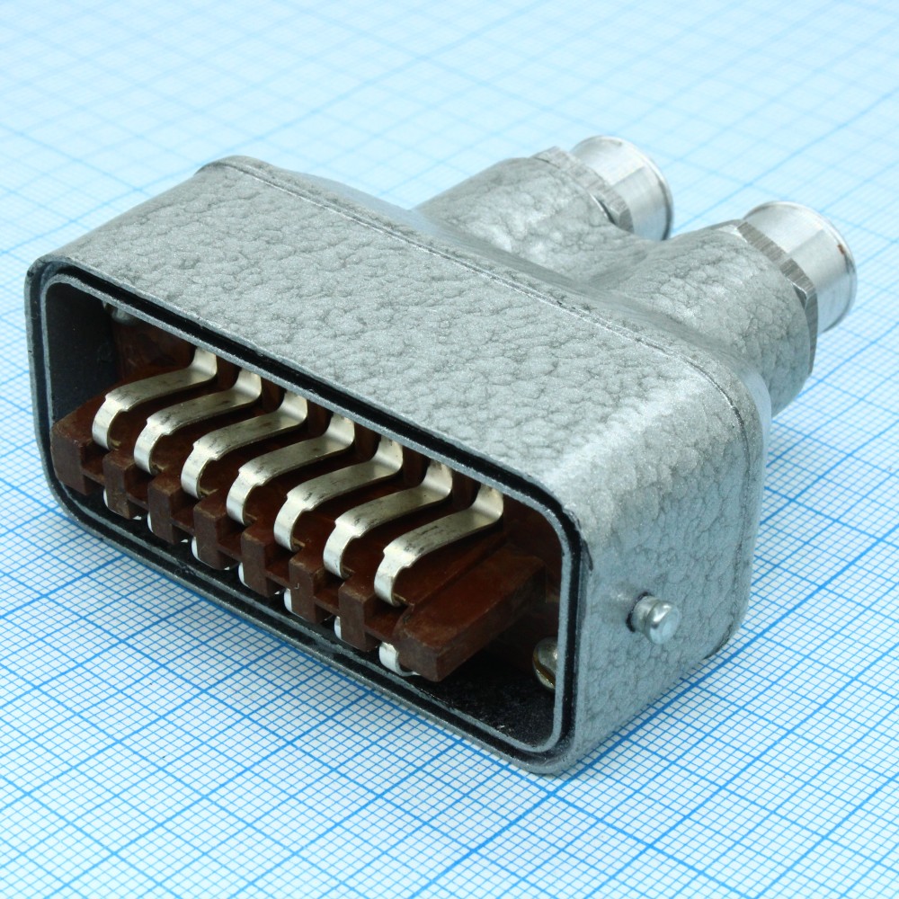 РШАВКП-14-2, 14-ти контактная вилка в кабельном прямом корпусе 2 ввода