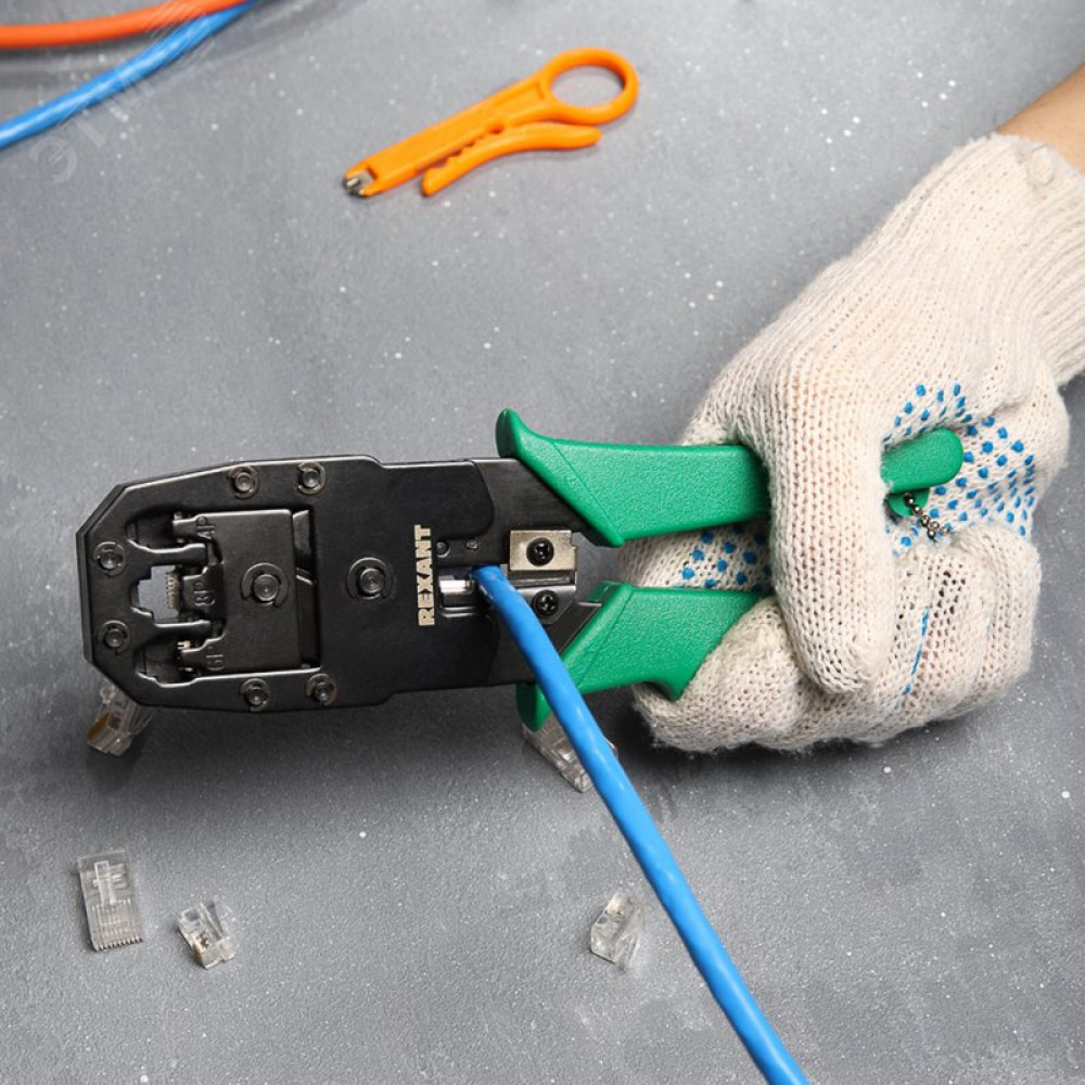Инструмент предназначен для обжима разъемов RJ-45 (8P8C и 10P10C), RJ-12 (6P6C), RJ-11 (6P4C и 6P2C) и RJ-10 (4P4C) в зависимости от модели инструмента, обеспечивает высокое качество соединений, производительность и культуру монтажа.