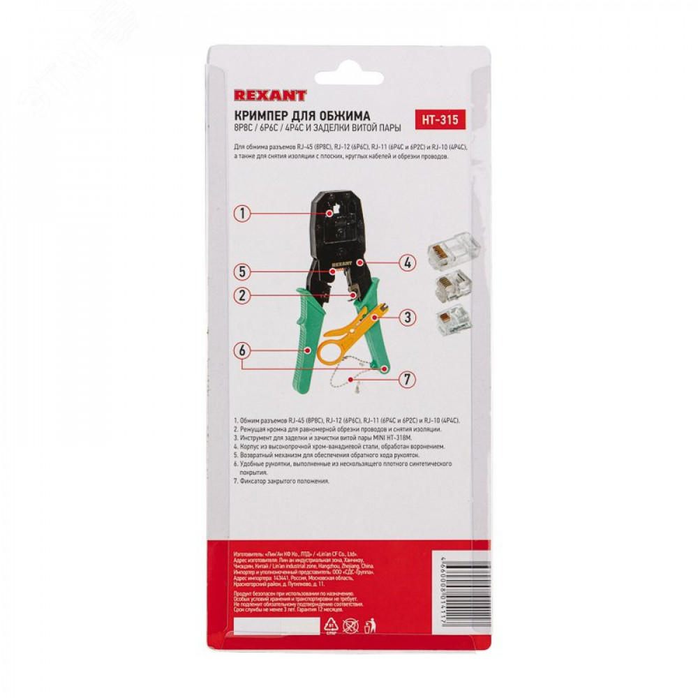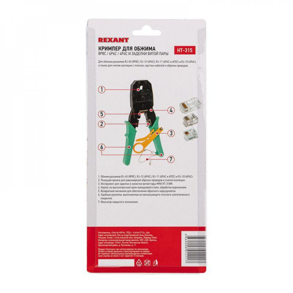 HT-200 (HT-315), Кримпер для обжима 8P8C, 6P6C, 4P4C, заделка витой пары