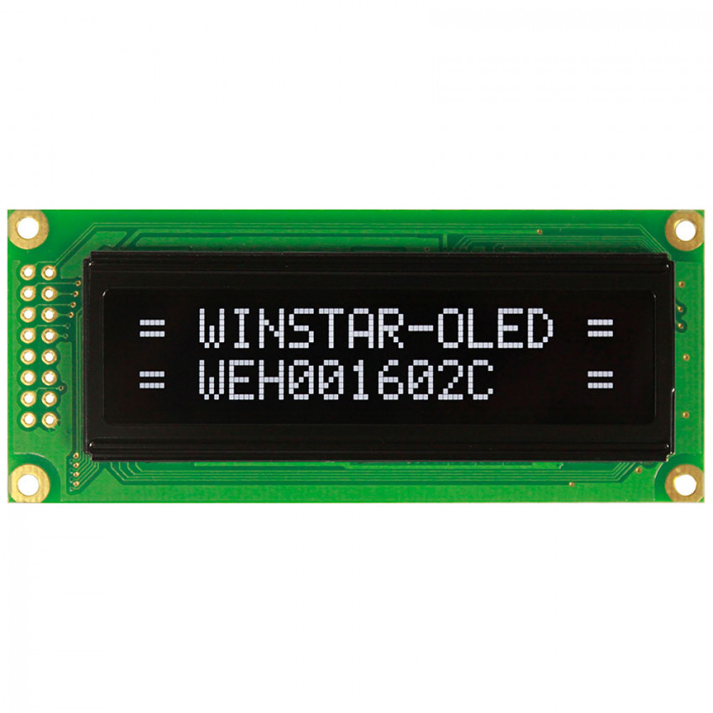 WEH001602CWPP5N00100, OLED символьный 16х2 (1602C), белый, 8-битный паралл. интерфейс, VDD =5В, -40...+80С