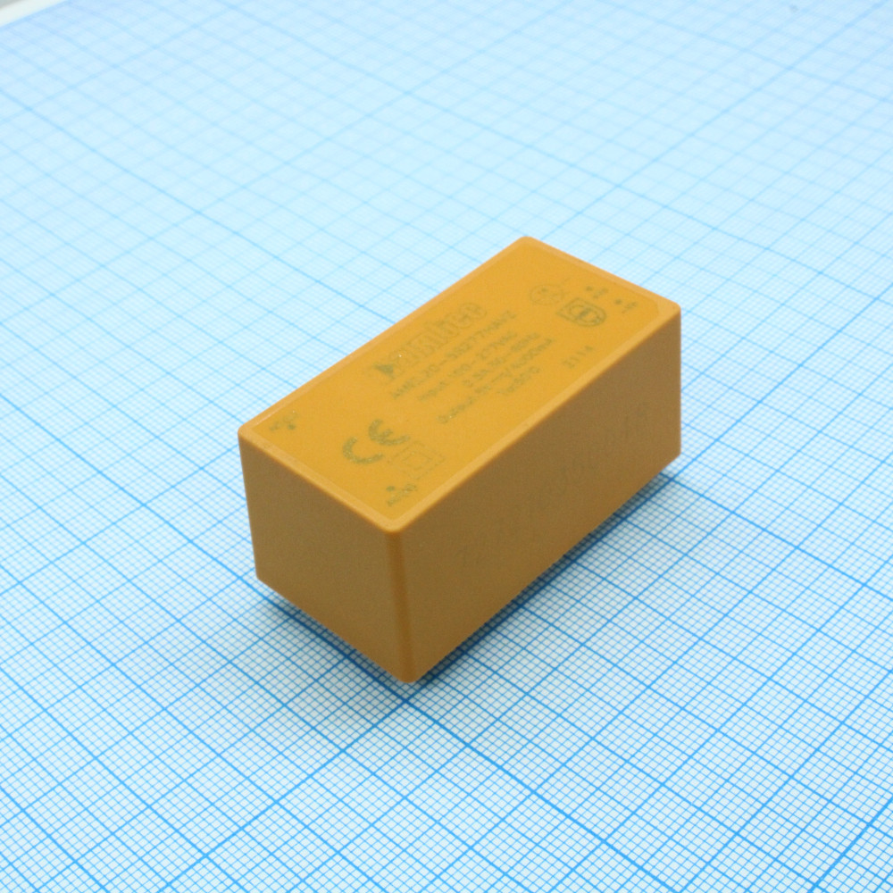 AC-DC, 20 Вт, вход 85...264В AC 47...440 Гц, 120...370B DC, выход 5В/4А, изоляция 3000В AC, в корпусе на плату 52.4x27x24мм, -30...+70°C