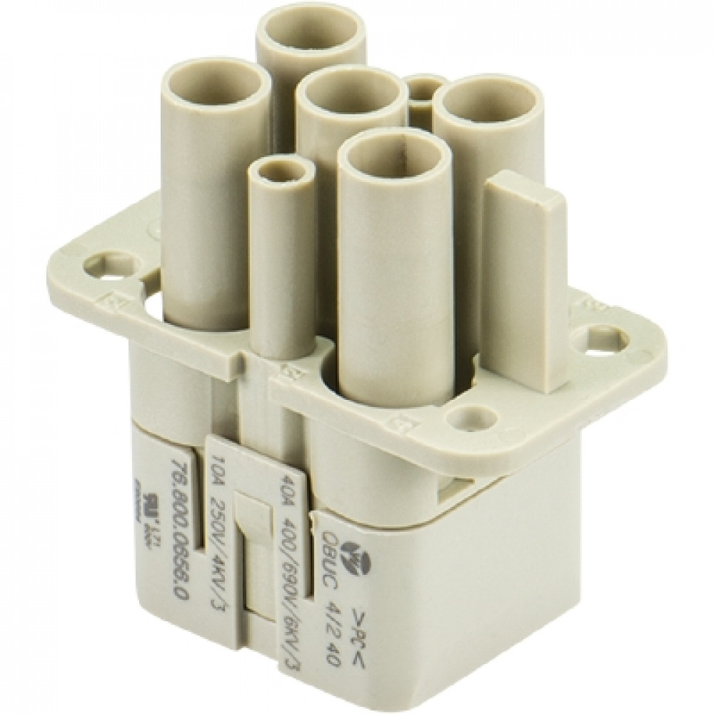 Розеточная контактная вставка 76.800.0856.0, Розеточная контактная вставка, обжимная фиксация, 4/2 полюсов + PE, типоразмер Q, 250V, 10A, (обжимные контакты поставляются отдельно)