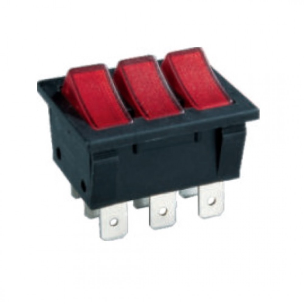 RK1-37 1X1X3N B/R"0-", Выключатель клавишный ON-OFF с подсветкой цвет корпуса (черный) цвет кнопки (красный)