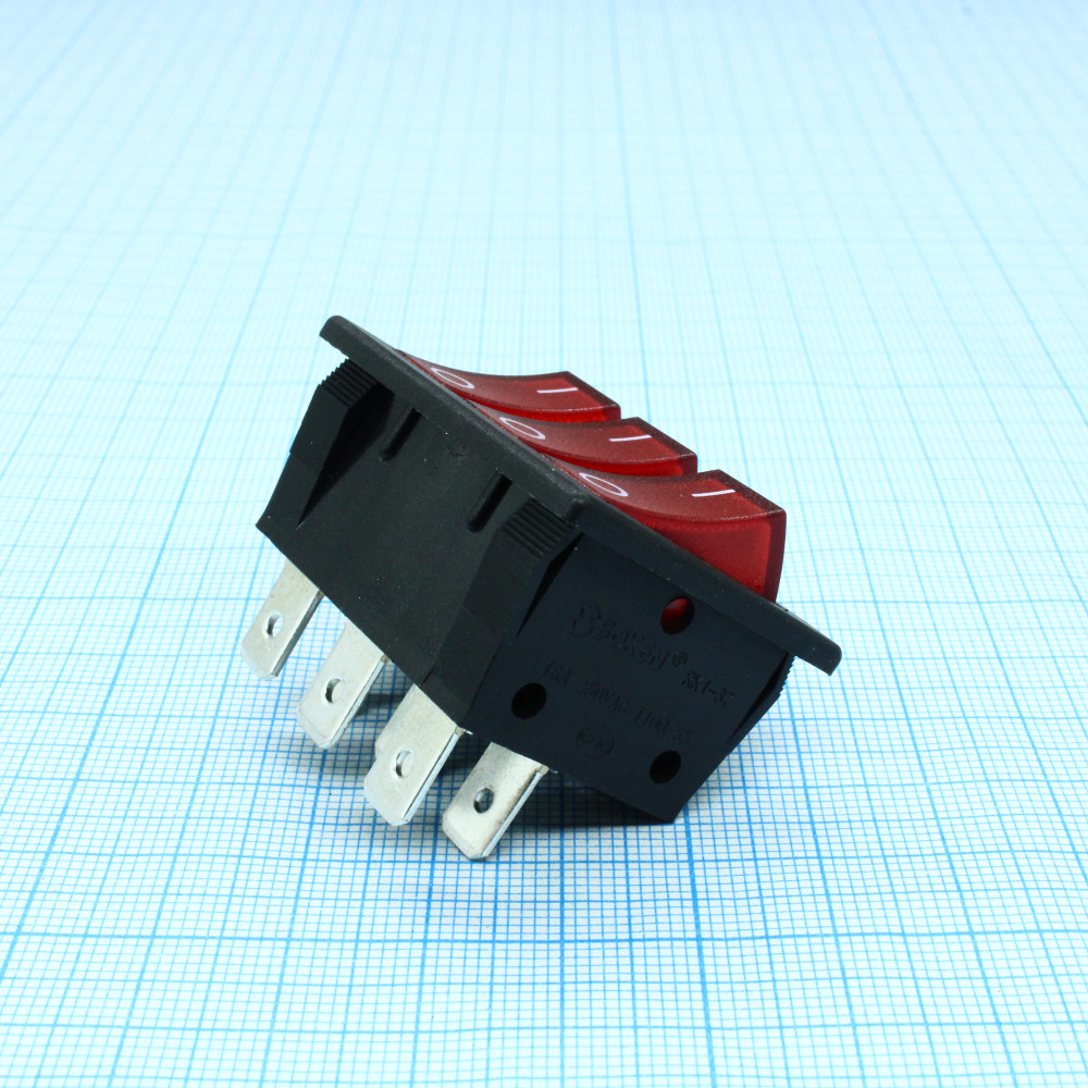 RK1-37 1X1X3 B/R"0-", Выключатель клавишный ON-OFF без подсветки цвет корпуса (черный) цвет кнопки (красный)