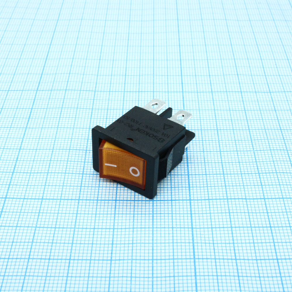 Доставка RK2-03 2X1N B/OR"0-" , Выключатель клавишный ON-OFF с подсветкой цвет корпуса (черный) цвет кнопки (оранжевый)