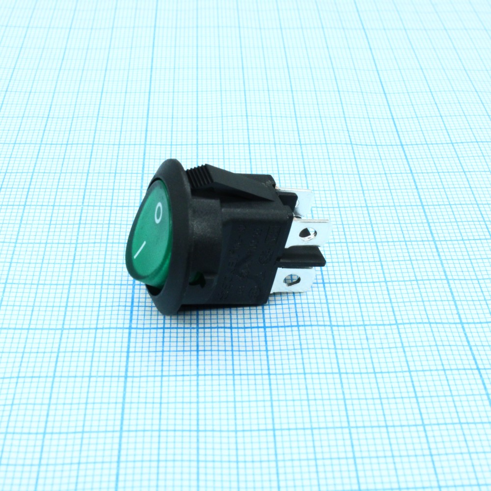 Выключатель клавишный ON-OFF без подсветки цвет корпуса (черный) цвет кнопки (зеленый)