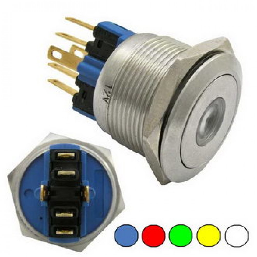 GQ22-11D/Y ON-(OFF)+OFF-(ON), Антивандальная кнопка металлическая без фиксации с точечной подсветкой, посадочная резьба М22, контакт на замыкание и контакт на размыкание, контакты под пайку/под разъем