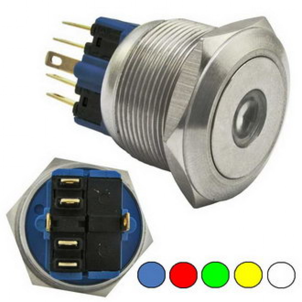 GQ25-11D/Y ON-(OFF)+OFF-(ON), Антивандальная кнопка металлическая без фиксации с точечной подсветкой, посадочная резьба М25, контакты под пайку