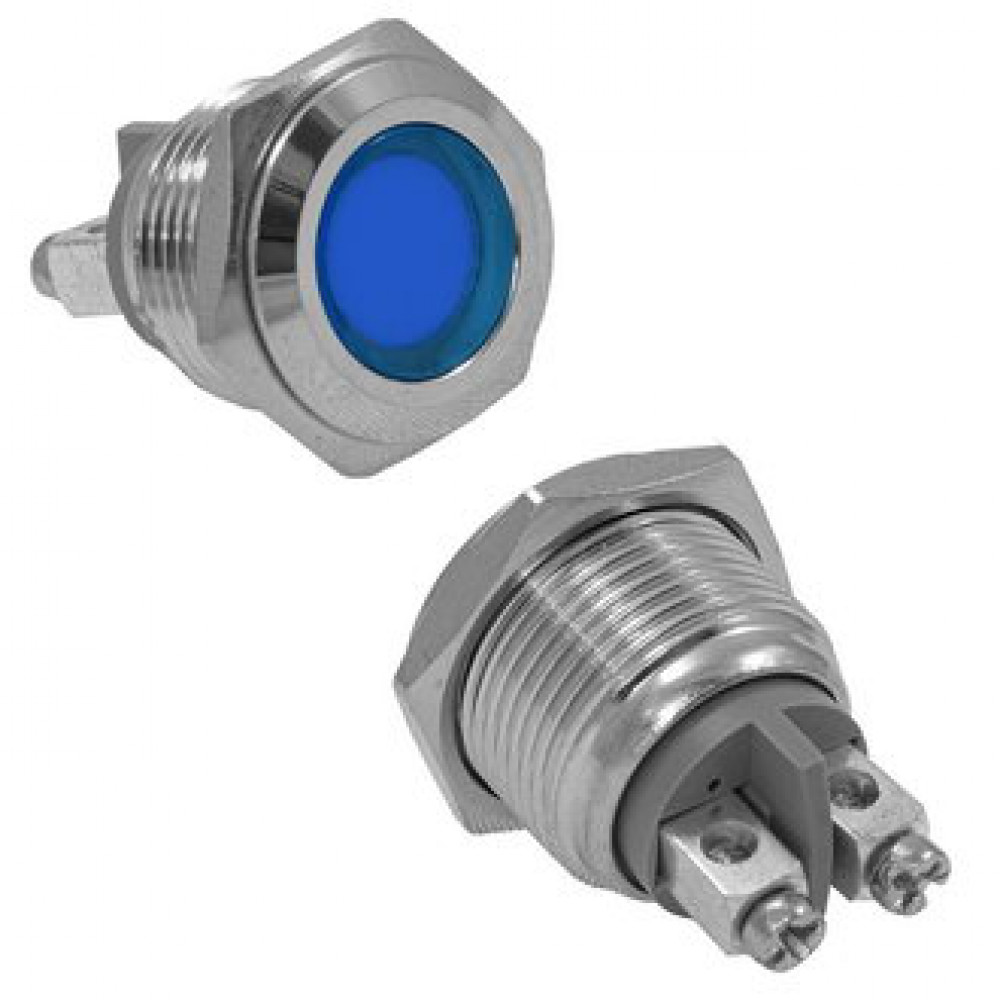GQ16F-B, Антивандальная индикаторная лампа, цвет синий, 12-24В, 2А, посадочный диаметр М16, винтовое соединение