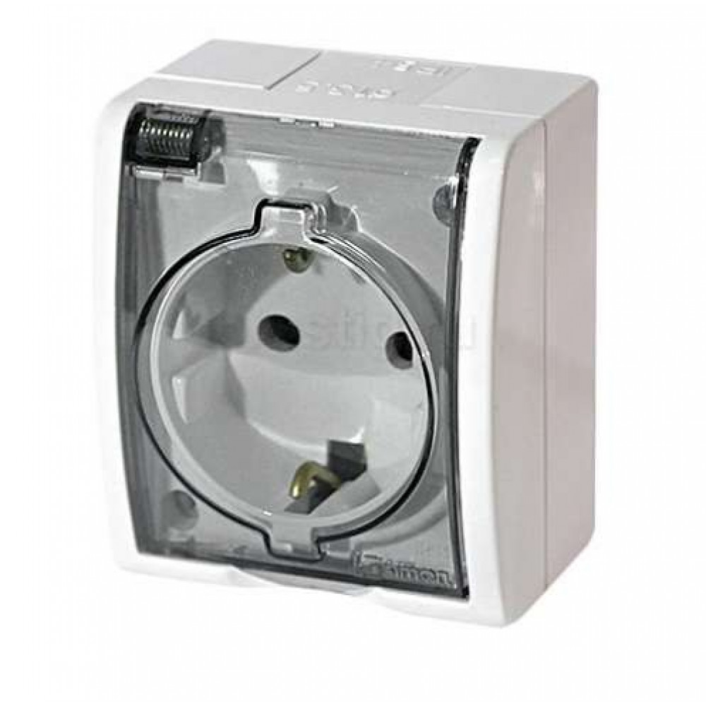 Розетка с заземлением Schuko, с крышкой полупрозрачной, IP54, 16А 250В, винтовой зажим, S15 Aqua, бе