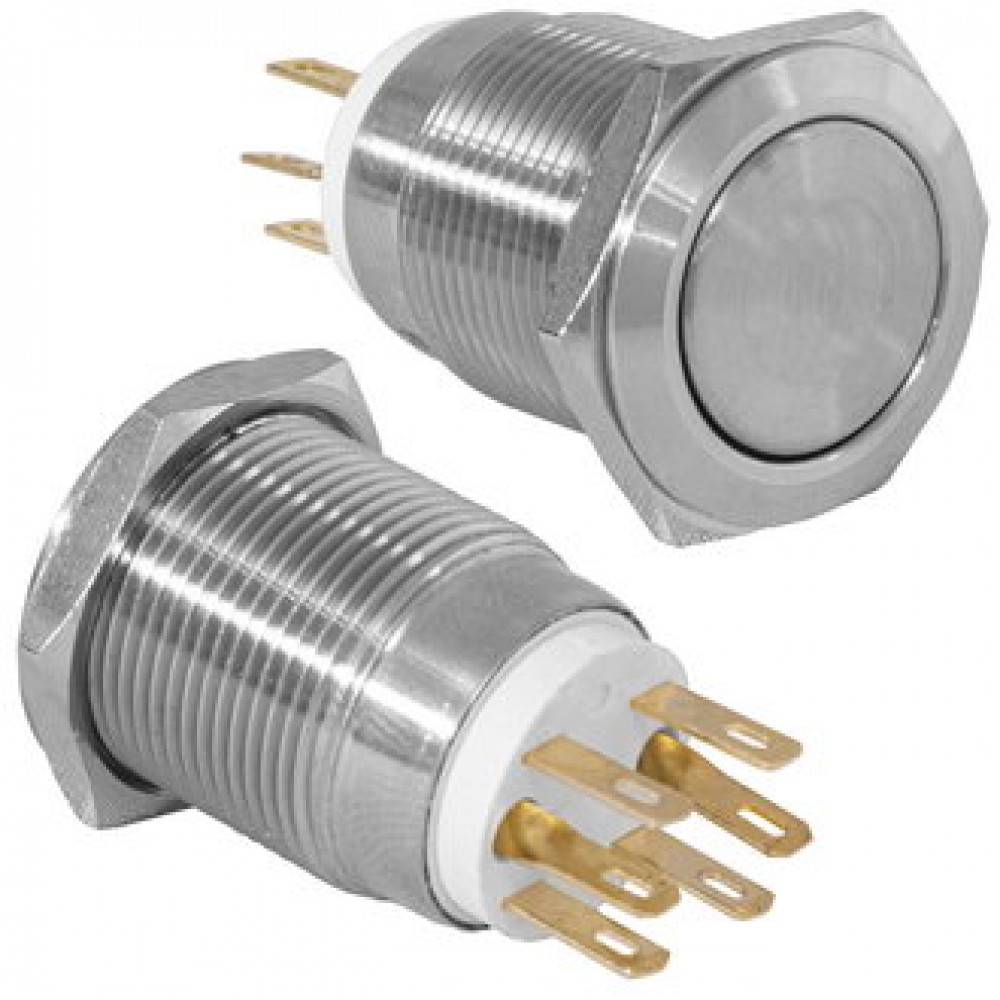 Кнопка антивандальная металлическая без фиксациии, 5А 250В, резьба М19