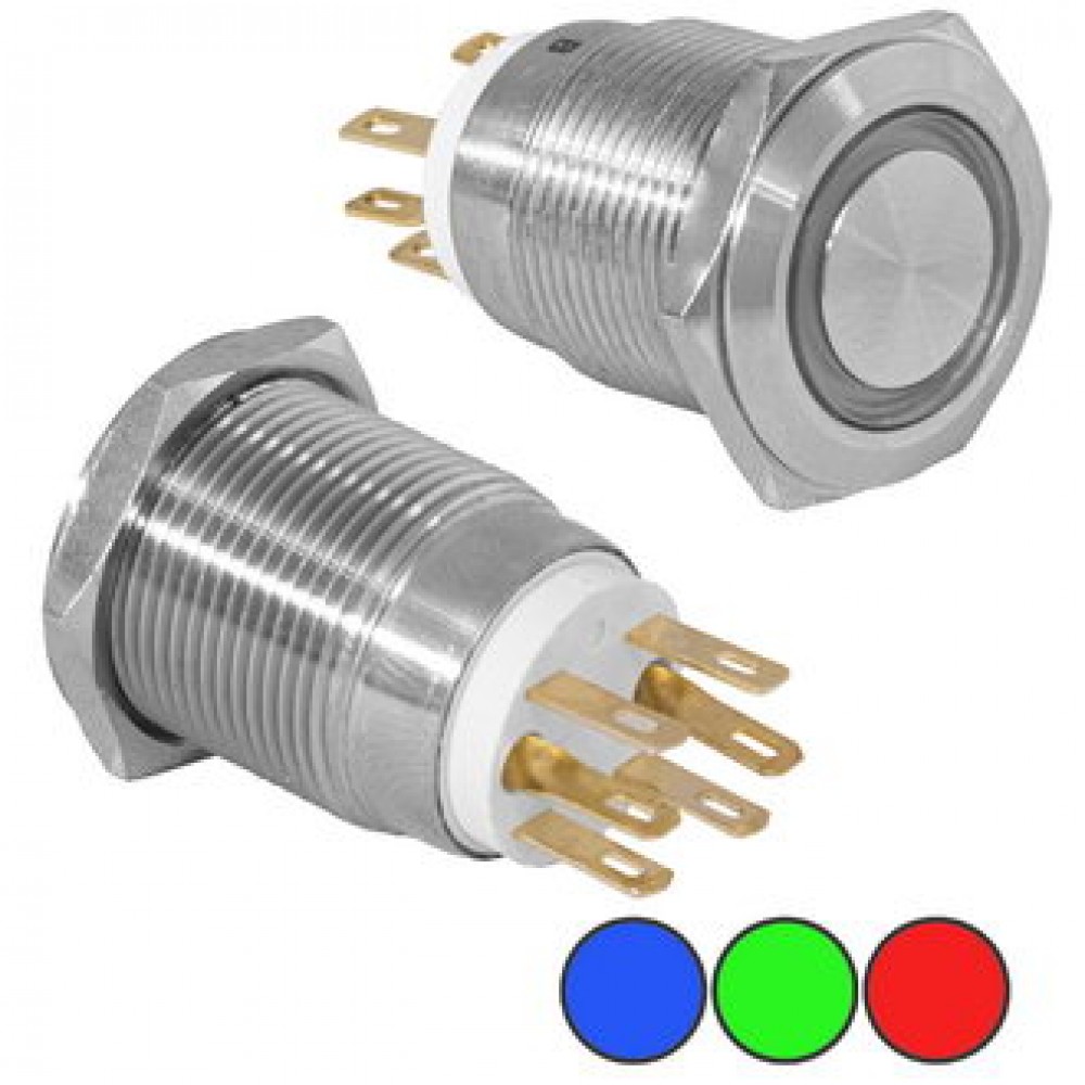 LAS1-GQ-11E/R ON-(ON), Кнопка антивандальная металлическая без фиксациии с кольцевой подсветкой, 5А 250В, резьба М19