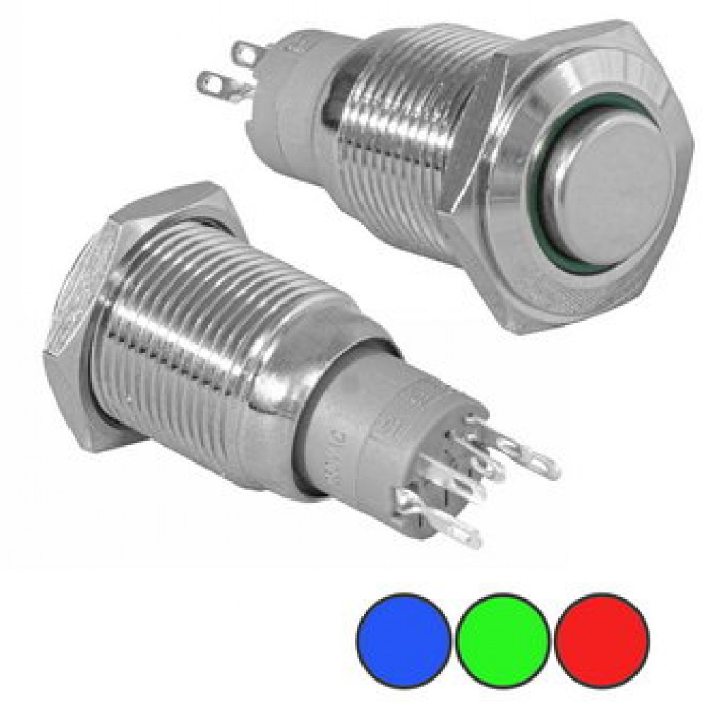 Кнопка антивандальная металлическая с фиксацией с кольцевой подсветкой, 3А 250В, резьба М16