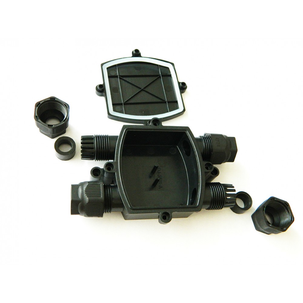 Распределительная коробка, 4 кабельных ввода, IP68, габариты (ШхДхВ, мм), 80х125х30, пластик, цвет черный