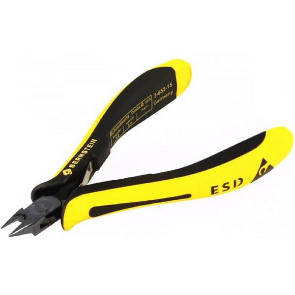 3-653-15, Антистатические бокорезы серии Euroline с двухцветным эргономичным упругим покрытием рукояток из антискользящей резины, для мягкого провода до 0,6 мм, прямые губки, плоский срез, длина 120 мм