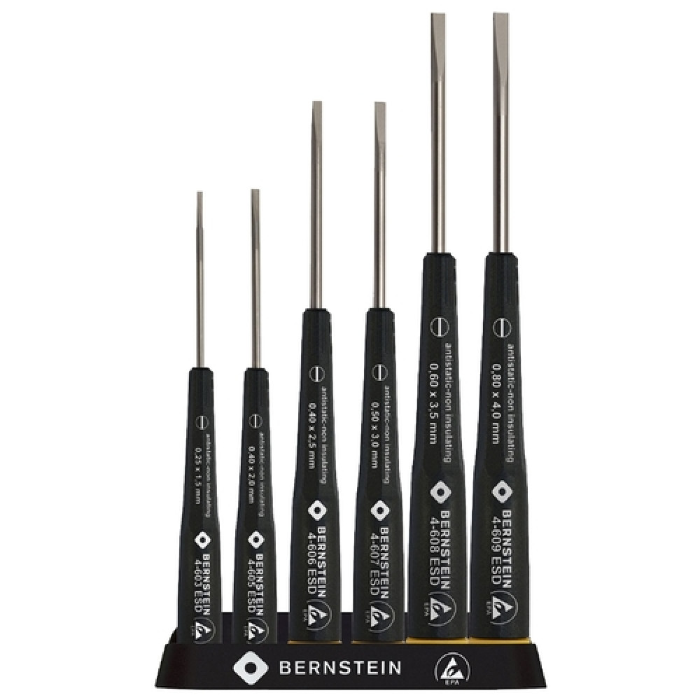 Набор из 6 хромванадиевых радиомонтажных шлицевых отверток длиной 140-150 мм