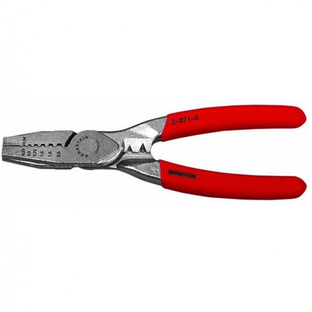 3-871-6, Обжимные плоскогубцы для концевых гильз, с возможностью резки проволоки и снятия изоляции. Пресс клещи для проводов сечением 0,25-2,5мм2, длина 155мм.