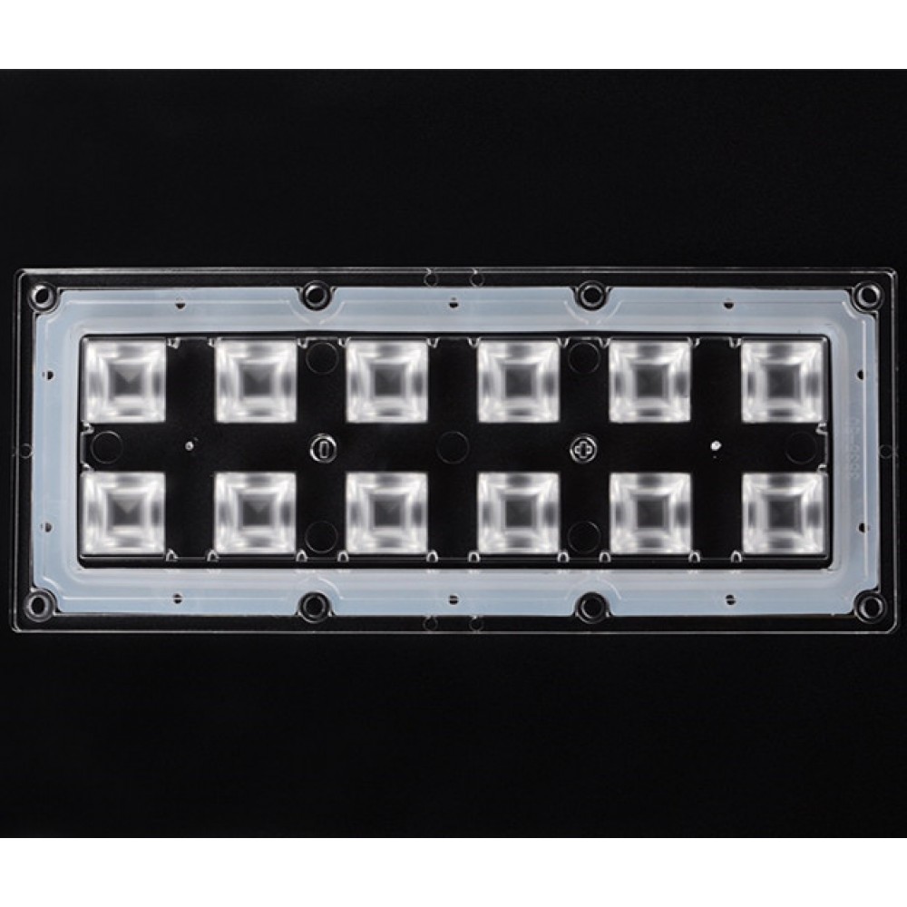 Групповая линза 2x6 на 12 светодиодов LG Innotek серии LEMWA33X, индустриальная диаграмма 98°, эфф=94%, 173x71,4x11,4mm