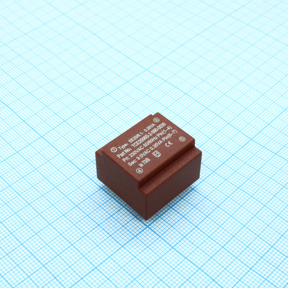 TCE2006S-2-090-0035, Трансформатор питания 0.35ВА 230В 9В/38.8мА ta 70°C/B (EE 20/6)15.5мм.