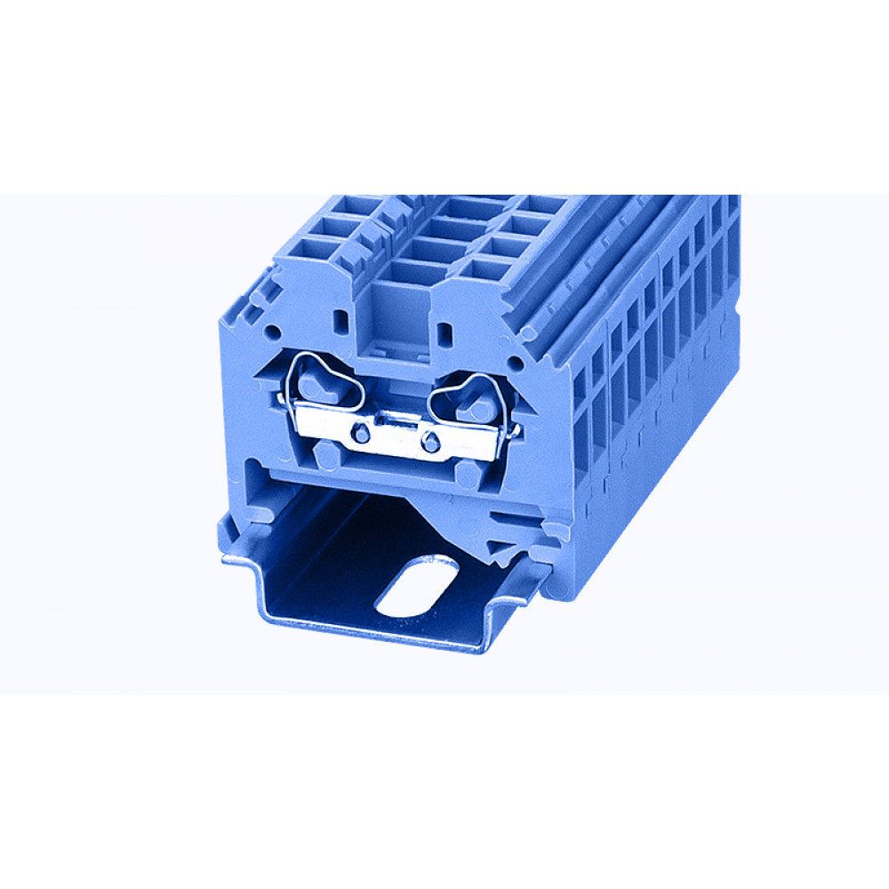 Проходная клемма, тип фиксации провода: пружинный, номинальное сечение: 4 мм кв., 32A, 800V, ширина: 6 мм, цвет: синий, тип монтажа: DIN35