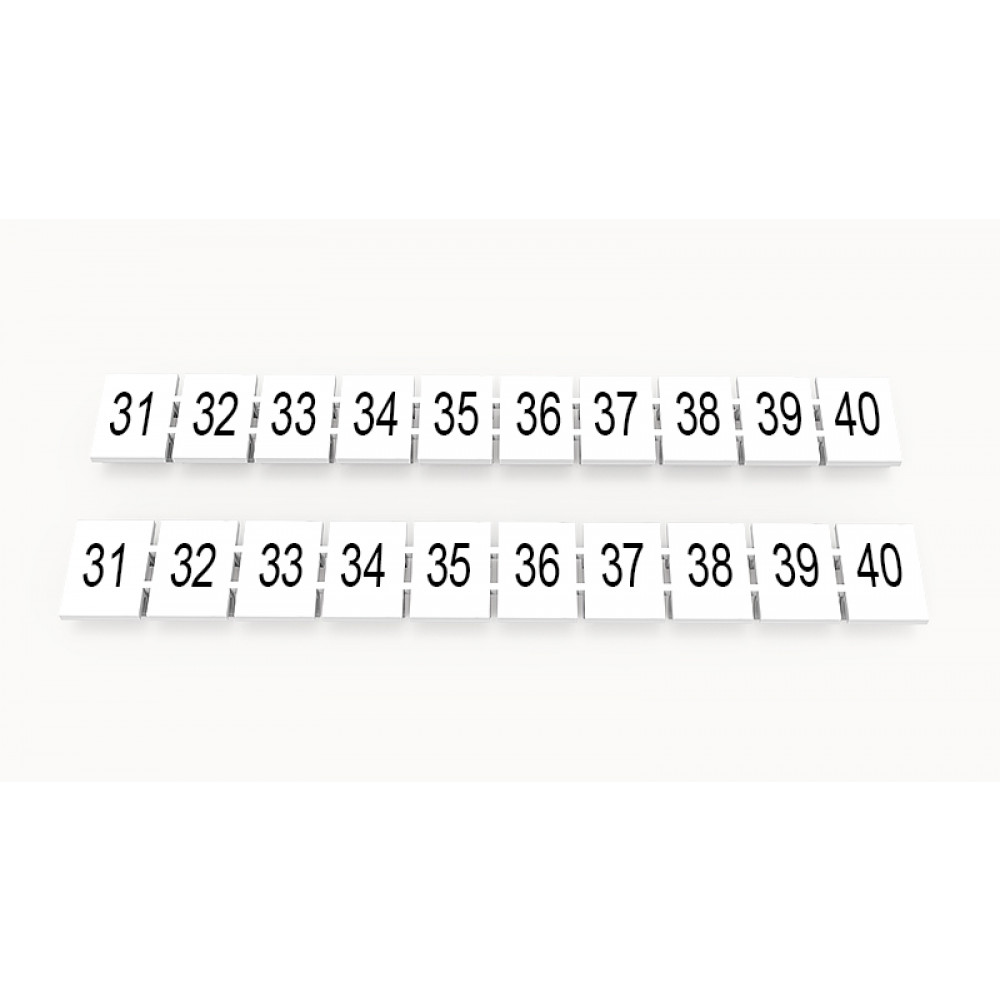 Кассета с маркировочными шильдиками, для клемм сечением 6 мм.кв., верхняя, 10 шильдиков, нанесенные символы: 31...40, с вертикальным расположением, размер шильдика: 7,45 x 10,7 мм, цвет: белый