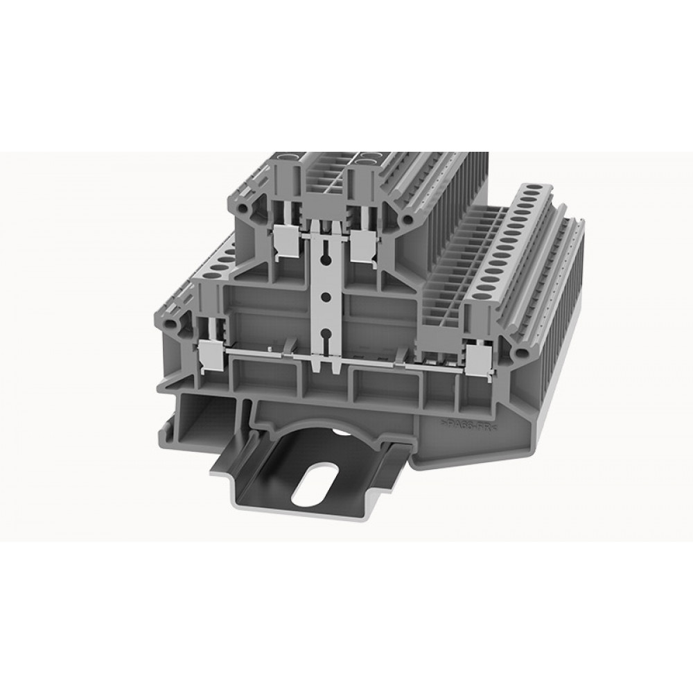 Этажная клемма, 2 этажа, межэтажное соединение, тип фиксации провода: винтовой, номинальное сечение: 2,5 мм кв., 24A, 500V, ширина: 5 мм, цвет: серый, тип монтажа: DIN35