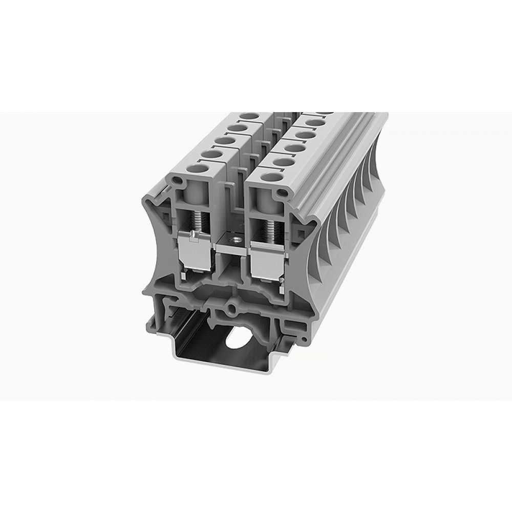 Проходная клемма, тип фиксации провода: винтовой, номинальное сечение: 16 мм кв., 76A, 1000V, ширина: 12,2 мм, цвет: серый, тип монтажа: DIN35, винтовая перемычка, зажимная клетка: латунь