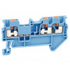 Проходная клемма, 3 точки подключения, тип фиксации провода: Push-in, номинальное сечение: 1.5 мм кв., 17,5A, 500V, ширина: 3,5 мм, цвет: синий, тип монтажа: DIN35, втычная перемычка,