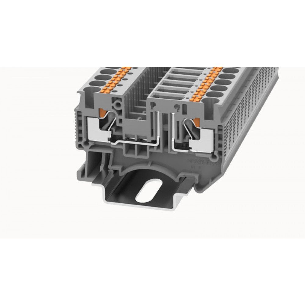 Клемма для подключения модулей, тип фиксации провода: Push-in, номинальное сечение: 4 мм кв., 20A, 500V, ширина: 6,2 мм, цвет: серый, тип монтажа: DIN35, втычная перемычка,