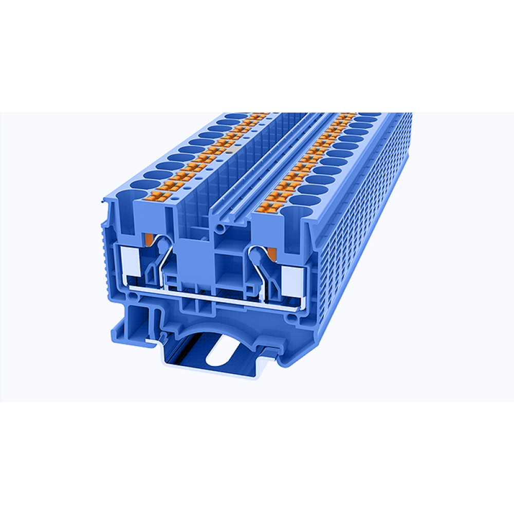 Проходная клемма, тип фиксации провода: Push-in, номинальное сечение: 6/10 мм кв., 57A, 1000V, ширина: 8 мм, цвет: синий, тип монтажа: DIN35