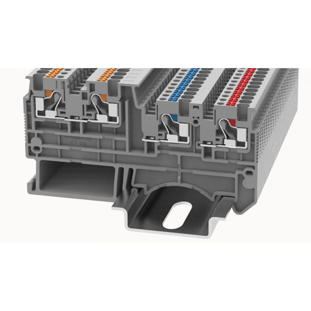 Клемма для подключения датчиков, тип фиксации провода: Push-in, номинальное сечение: 1.5 мм кв., 13,5A, 250V, ширина: 3,5 мм, цвет: серый, тип монтажа: DIN35, втычная перемычка,