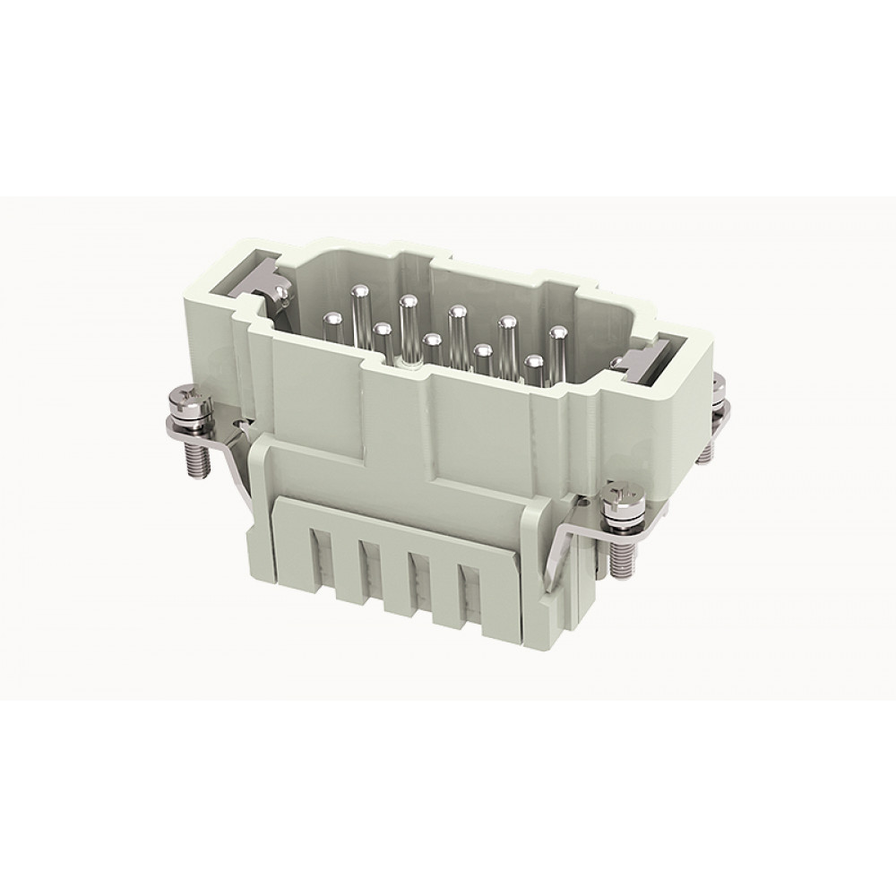 Вилочная контактная вставка, пружинная фиксация, 10 полюсов + PE, типоразмер 10B, 500V, 16A, сечение обслуживаемых проводников 0,75-2,5 мм кв, тип покрытия контактов: серебро