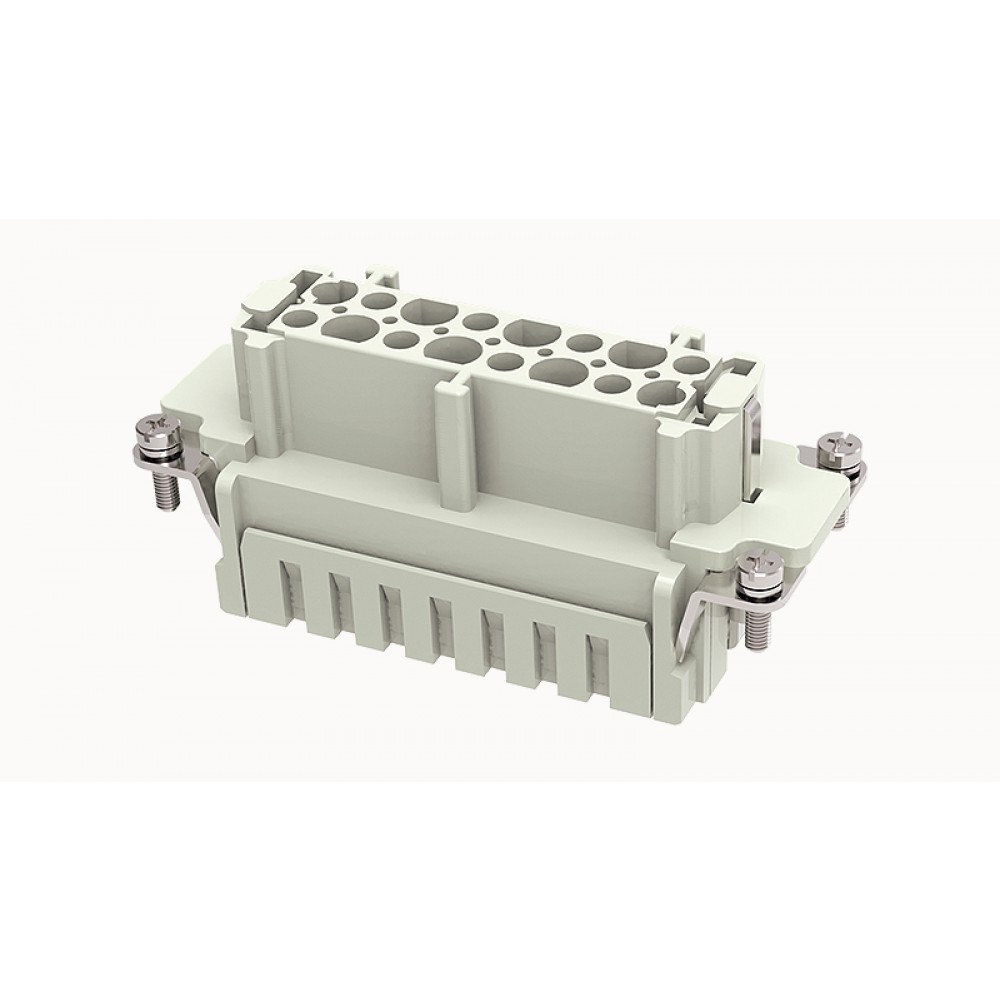 Розеточная контактная вставка DE-016-FS, Розеточная контактная вставка, пружинная фиксация, 16 полюсов + PE, типоразмер 16B, 500V, 16A, сечение обслуживаемых проводников 0,75-2,5 мм кв, тип покрытия контактов: серебро